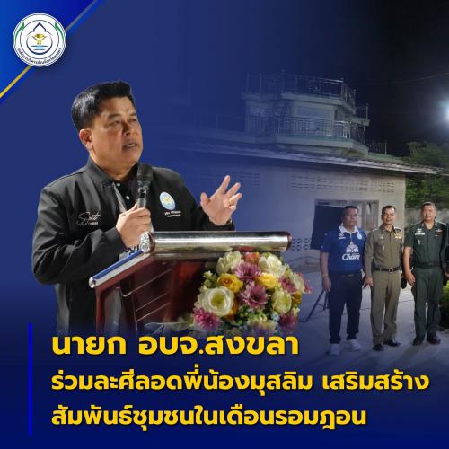 ร่วมแบ่งปันความศรัทธา ในค่ำคืนแห่งรอมฎอน นายก อบจ.สงขลา พร้อมสมาชิกสภา อบจ. ร่วมละศีลอดกับพี่น้องมุสลิม ณ มัสยิดนูร (บ้านหนองบัว) ต.คลองแห อ.หาดใหญ่
