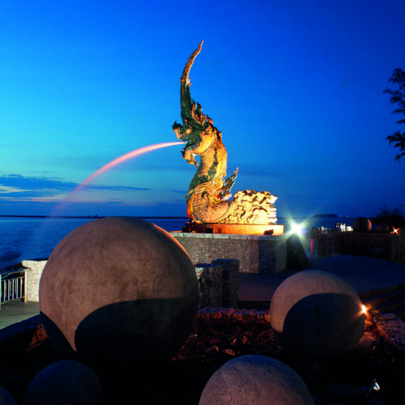 ตามความเชื่อของผู้คนในเอเชียตะวันออกเฉียงใต้ พญานาค หมายถึง สัญลักษณ์ของการกำเนิดของน้ำและความอุดมสมบูรณ์นับเป็นความเชื่อแต่โบราณนานมา ประติมากรรมนาคพ่นน้ำจังหวัดสงขลา เกิดขึ้นจากแรงบันดาลใจของนายอุทิศ ชูช่วย นายกเทศมนตรีนครสงขลา ที่จะสร้างสัญลักษณ์แห่งใหม่ของเมืองสงขลา ขึ้นเมื่อปี พ.ศ.2549 โดยมีอาจารย์มนตรี สังข์มุสิกานนท์ เป็นผู้ดำเนินงานออกแบบและก่อสร้าง