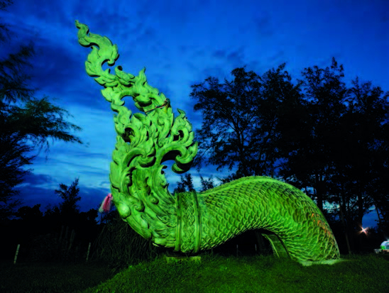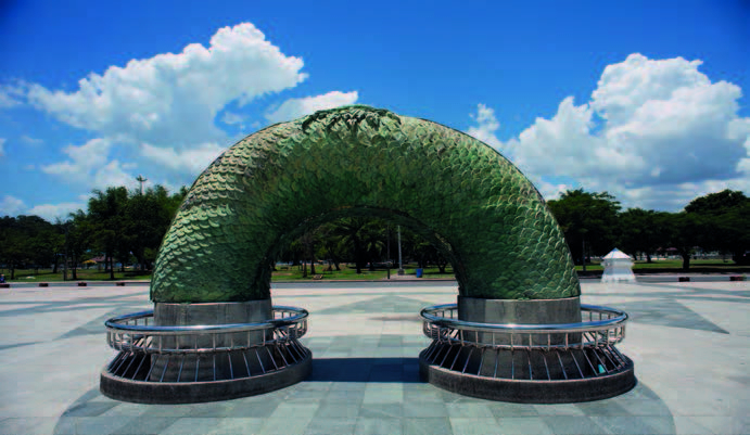 โดยมีแนวคิดพิสดารไม่เหมือนใครด้วยการแบ่งประติมากรรมนี้ออกเป็น 3 ส่วน คือ ส่วนหัวของพญานาคที่พ่นน้ำได้ หมายถึงสติ ปัญญาที่เป็นเลิศของชาวสงขลา ตั้งอยู่ที่ปลายแหลมสนอ่อน ส่วนกลางคือสะดือนาค หมายถึงความอุดมสมบูรณ์ของเมืองสงขลา ตั้งอยู่ที่ลานชมดาวสนามสระบัว หาดสมิหลา และส่วนหางของพญานาคหมายถึงบริวารที่พรั่งพร้อมของชาวสงขลา ตั้งอยู่ที่ริมหาดสมิหลา อาจกล่าวได้ว่านี่คือ ประติมากรรมแยกร่างอย่างสมบูรณ์แบบหนึ่งเดียวในเมืองไทยและเป็นพญานาคที่ยาวที่สุดในประเทศไทยอีกด้วย