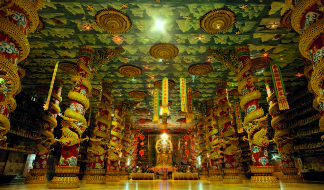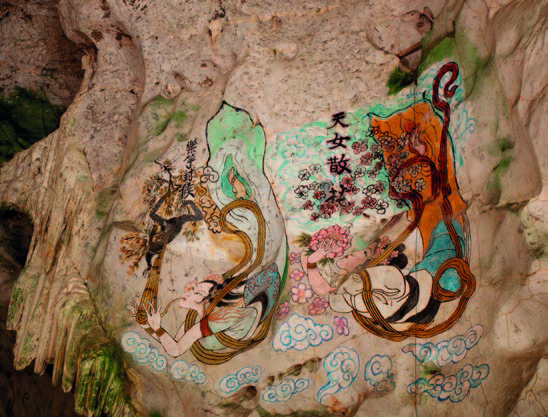 ในส่วนที่เป็น ถ้ำเขารูปช้าง จะอยู่ด้านหลังวิหารด้านหน้ามีลำธารใสไหลเย็น ภายในถ้ำมีหินงอกหินย้อยสวยงามมีการแต่งเติมจนเป็นรูปหัวช้าง ภายในแบ่งเป็น 3 ถ้ำ ถ้ำแห่งแรกประดิษฐานพระพุทธรูปปางนาคปรก มีภาพเขียนสีลวดลายจีนบนฝาผนังถ้ำสวยงาม ถ้ำต่อมาประดิษฐานพระพุทธรูปปางไสยาสน์ และมีทางเดินไปสู่ถ้ำแห่งที่ 3 ซึ่งประดิษฐานรูปปั้นพระโพธิสัตว์กวนอิมในท่าประทับยืน